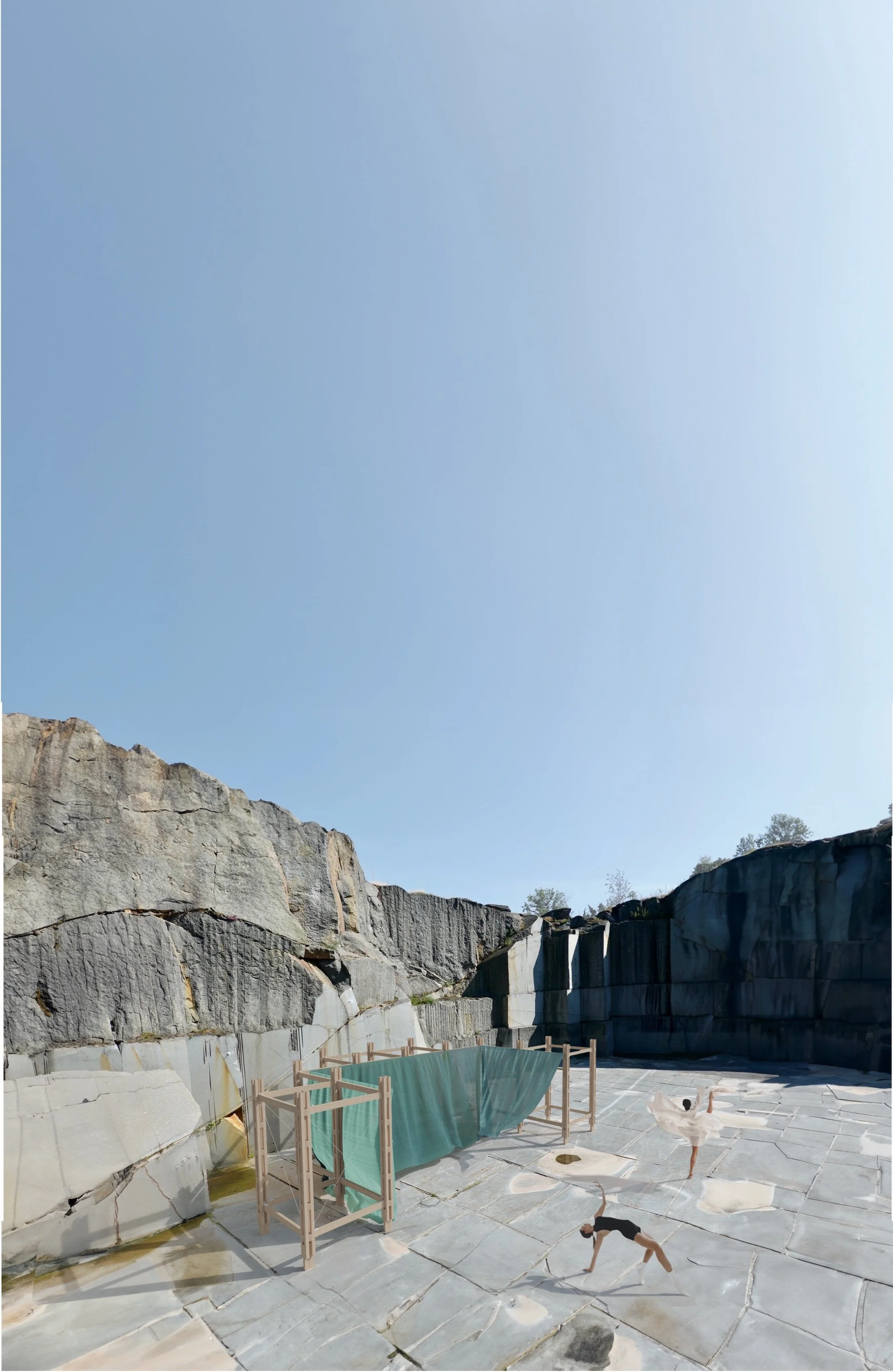 For a dance and architecture festival, we aimed to create something dynamic and ethereal, embodying qualities of dance. With a strong focus on sustainability, reusability, and working within an extremely tight budget, we got the idea of making use of an unexpected yet perfect material: discarded scaffolding debris netting.