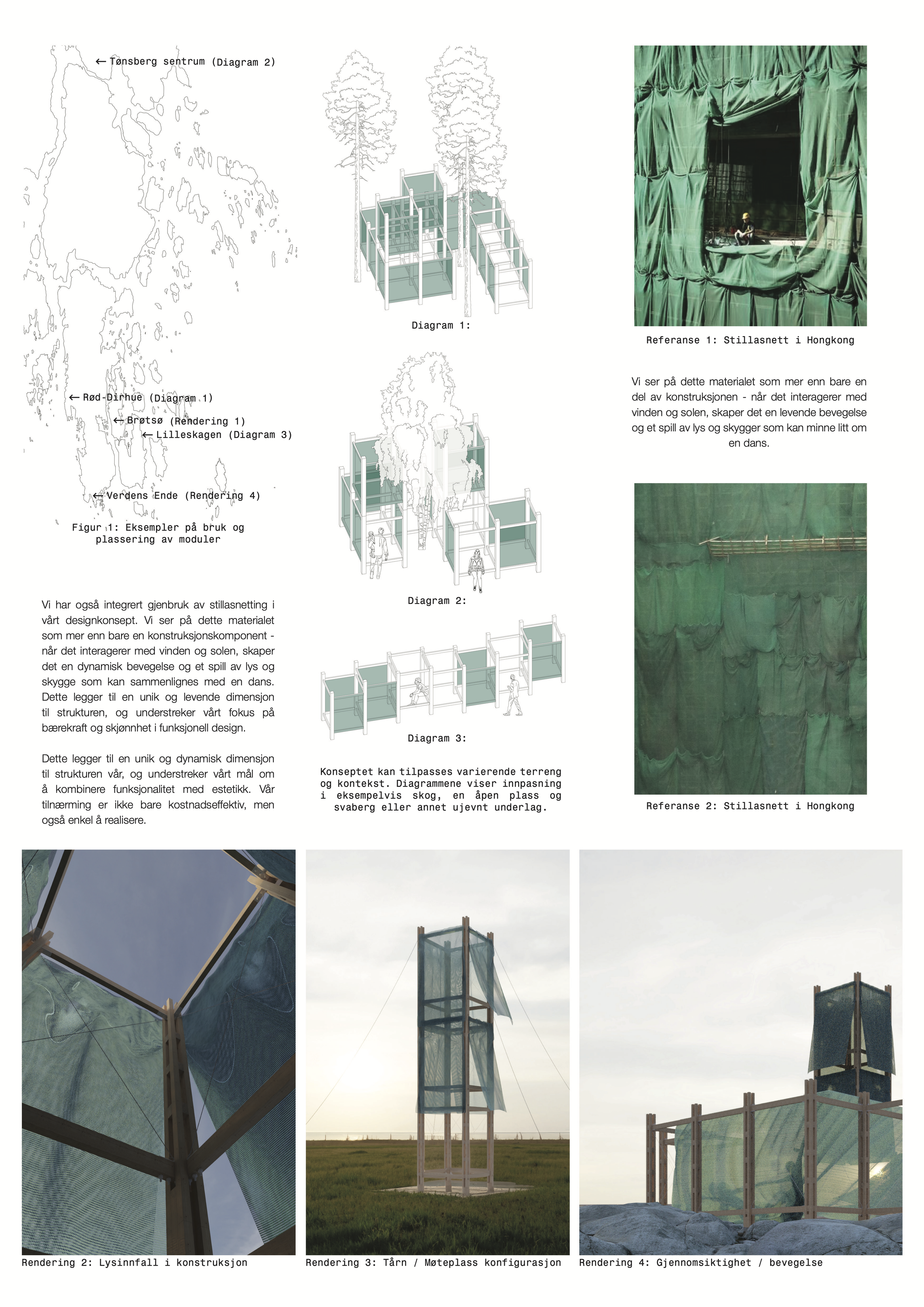 The Færder Biennale is a festival for dance and architecture. The competition brief called for a small-scale, low-budget architectural element to be constructed on site for the festival. Key considerations included sustainability and reusability, with an additional constraint of a construction budget just shy of 10,000 euros