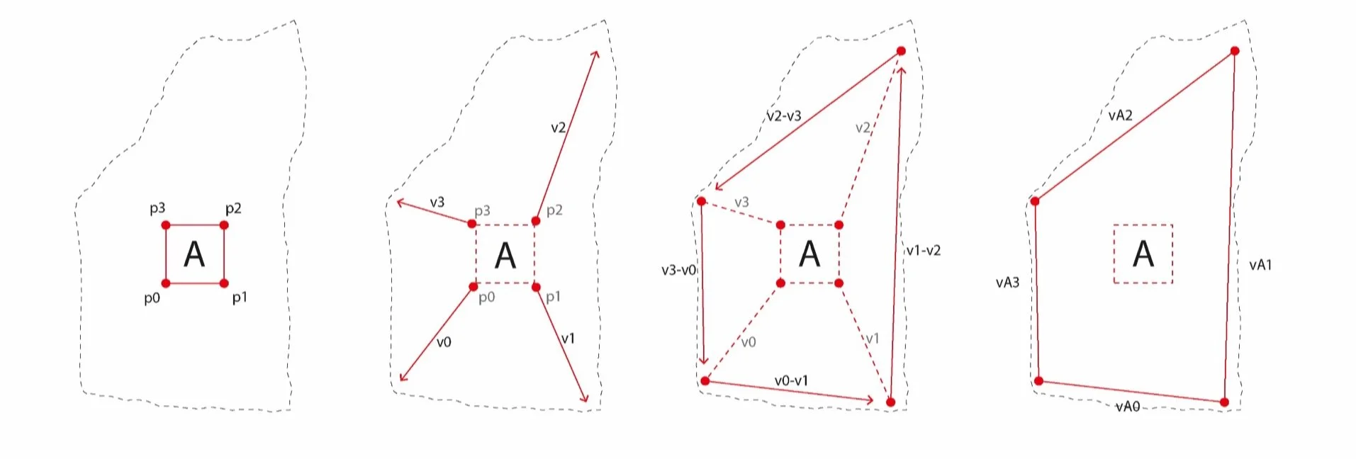 Before writing a solver algorithm, the shape is further simplified down to the numerical coordinates of its 4 corners